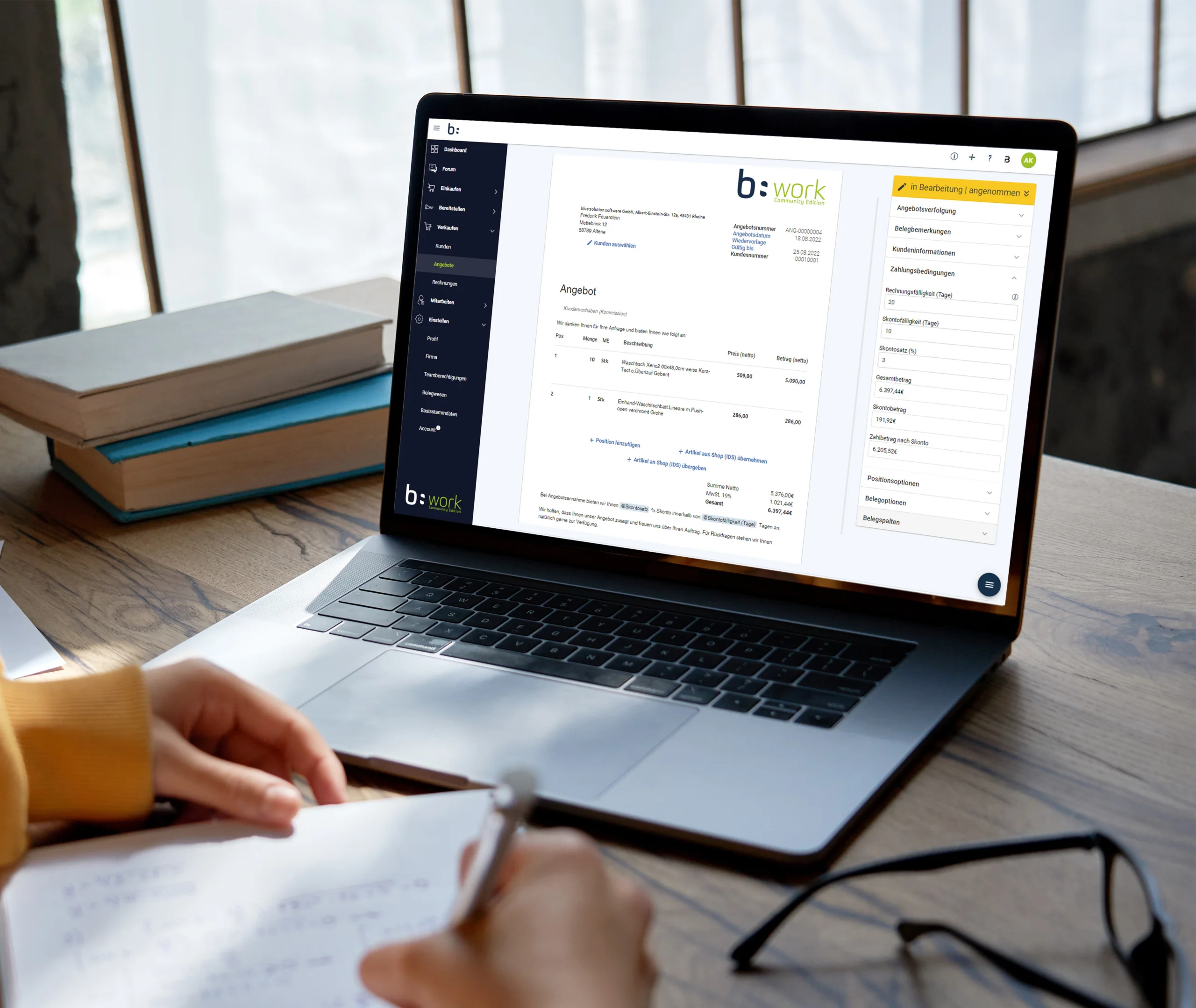 Mit b:work kannst du zum Beispiel deine Angebote und Rechnungen schreiben.